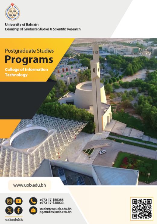 The College of Information Technology started its Master program in Information Technology in 2011 with an aim to “play a major role in the development of industrial and academic resources related to Information Technology, with the vision to make the University of Bahrain a part of the process aimed to transform Bahrain’s economy into a knowledge-based economy by promoting efficient, sustainable and effective IT initiatives in accordance with Bahrain vision 2030.”